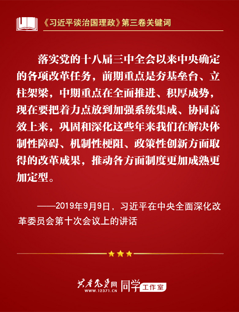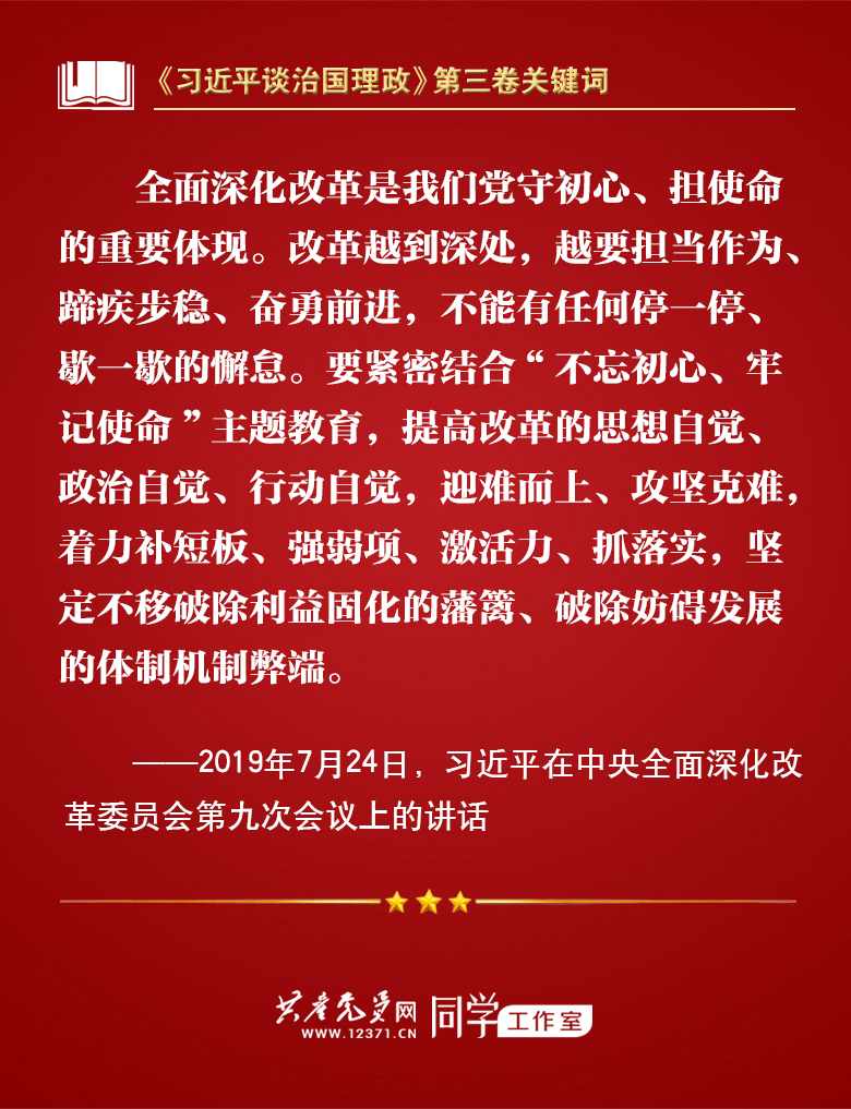 我们梳理习近平总书记部分讲话,带你学习著作中的关键词。今天的关键词是“全面深化改革”。