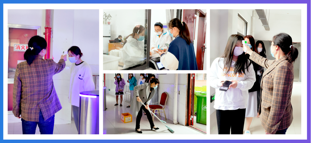 防疫期间,物业日常除了卫生保洁外,对食堂🚄、行政楼📙、教学楼、宿舍等公众区域每日两次消毒,对电梯😪、走廊等重点处进行多次消毒💅,保证每日校园垃圾清运清理工作正常运转。封控期间📬,宿管阿姨们更是毫不懈怠,夜间查房量比以前增加一倍。她们每天不定时对宿舍进行巡视,提醒同学们进宿舍先洗手消毒,不窜宿舍不聚集,不使用违规电器,保持室内空气流通,及时倒垃圾,共同维护宿舍楼栋的清洁🚥、安全。此外,宿舍进出管理和消杀工作要求也十分严格⛓🙉。每天多次使用消毒液对垃圾桶、垃圾暂存点、门厅、过道🍂、院子🟤、公共楼梯间、洗衣房🐍、茶水炉两米以外周边进行严格清洁消杀,完成后做好记录张贴在醒目处。为让保障学生安全,宿管阿姨还利用字幕、板报来加强防疫知识宣传,也常常关注学生情绪变化,关心他们身心健康状态。