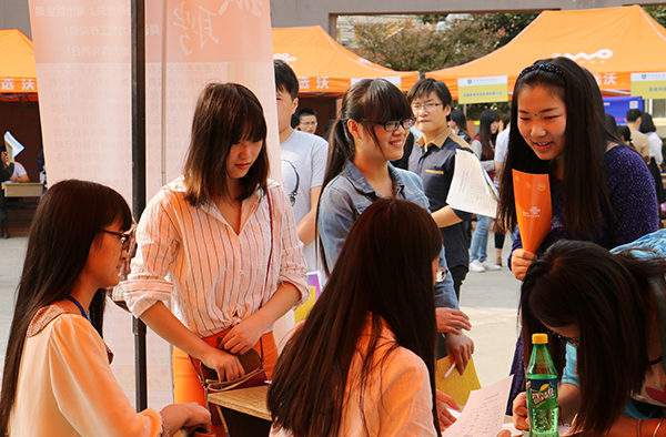 毕业季临近👶🏻,为帮助我院2016届毕业生更好的实现就业,10月21日下午🧑🏼🌾,我院在一号教学楼广场举办了一场声势浩大的就业双选会,40余家大型优质企业组团前来揽才,2000余岗位覆盖了学院各个专业,共吸引了千余名优秀学子前来参加。