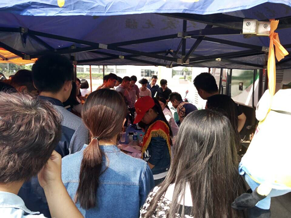 早上9点🍔,献血活动在学院南门正式拉开帷幕。活动现场✏️,不少同学围着青工部的志愿者询问有关献血的注意事项及安排,志愿者都一一为他们详细解答,讲解献血的有关知识🈸。