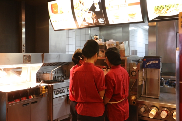 当天下午🏃♀️➡️,我院副院长陈文达一行在安徽麦当劳人力资源部经理吴林女士的陪同下来到餐厅了解了“小麦苗”的实训情况。