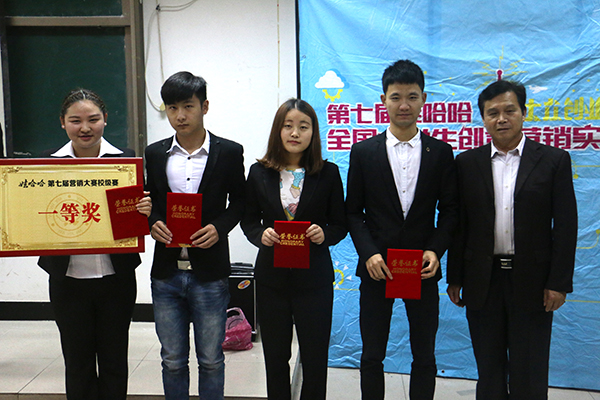 为期一个月的第七届哇哈哈营销大赛校级赛圆满落下帷幕👩🏼✈️,6月3日中午,院团委学生会学习部在3102教室隆重举行了第七届娃哈哈营销大赛校级赛的颁奖典礼。娃哈哈集团安徽公司总经理陈晓春、财经分院院长李德明教授、学院就业指导中心张辉老师应邀参加本次颁奖典礼👨👨👧。