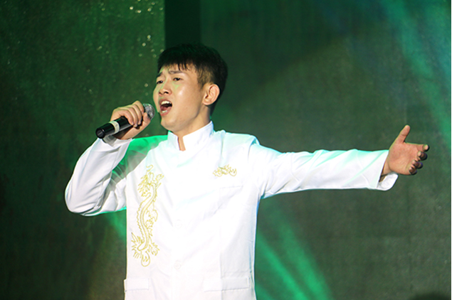 在2016年安徽省高职院校技能大赛民族组中荣获三等奖的许海峰同学演唱《草原上升起不落的太阳》