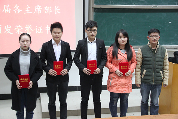 杨冬至老师上台讲话。他对学生会上一年度的工作表示充分的肯定,希望新成员能发扬前辈的优良作风,前赴后继,迎接挑战,积极进取,在以后的工作中做出更大的贡献。为表彰先进,随后由杨冬至老师为上一届优秀学生干部颁发奖状🥷。