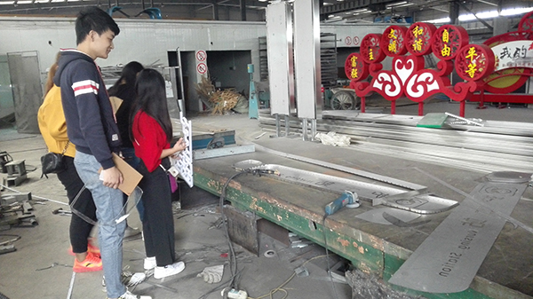 10月17日,2014级视觉传达专业师生们又来到位于包河工业园的合肥子午线标牌厂参观学习,在老师和工作人员的介绍下👩🏻🏫🧝🏿,实地了解了各种型材🦌、铝锌板1️⃣、亚克力、双色板的规格,观察到毛坯制作、喷漆、烤漆🏹、雕刻的工艺流程💓;学习到平面发光字、超薄灯箱🤦🏽♂️、点阵字的制作原理。两次市场考察让同学们收获很多理论课堂里没有的新知识🦃,有的同学直呼“开眼界”,有的同学说这下“心里有底气,到实习单位再也不胆怯了”。