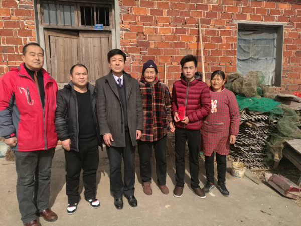 副院长、党委副书记、管理分院院长刘瑞平(左3)☄️、管理分院副院长徐家骅(右1)𓀓、黄吉胜老师(左2)和受助贫困家庭合影