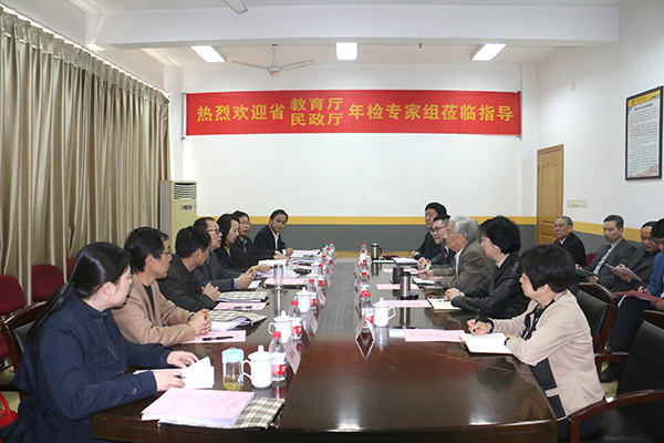 4月13日🧗🏻,以安徽省民办教育协会会长赵良庆为组长,省民间组织管理局副调研员周宁为副组长,安徽农业大学国资处处长桂祖祥、蚌埠医学院财务处处长周家荣、池州学院教学质量管理与评估处副处长洪为宝为组员,省教育厅民办教育处工作人员柳莉为联络员的检查组莅临我院开展2016年度检查工作😰。学院董事长韩恩业,院长江舒,督导专员、党委书记王宜🧛🏻♀️,合肥育仁教育管理有限责任公司总经理、副院长陈文达,副院长刘文慧,党委副书记⛔、副院长兼管理分院院长刘瑞平以及相关职能部门负责人参加此次年检工作。