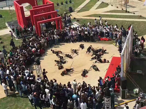 当天👟👨🏿,我院艺术分院2015、2016级各专业学生代表60余人乘坐校车前往展览现场。其中𓀓👊🏻,艺术分院音乐表演专业徐玉和室内专业张杰两位同学参与表演的 “行为艺术+实验戏剧”《醒》拉开了本次展览的序幕。