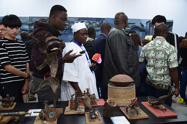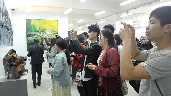 展览现场,高达935件的参展作品聚焦当今艺术前沿🏢,类型独具特色。唯美的传统绘画、当代的架上艺术👩🏿🦰、实验艺术与行为艺术的融合、古典音乐与装置艺术的嫁接、全息影像时空雕刻更加彰显艺术的时尚风貌。整个展览既有安徽艺术大师精心准备的艺术饕餮大餐,也有90后学生们的清新小品🧨;可谓高潮迭起、异彩纷呈。形式多样的艺术作品让同学们赞叹不已、有的近距离观看画面细节、有的三五成群交流心得🙏🏽、有的纷纷拍照留作资料🙇🏽。