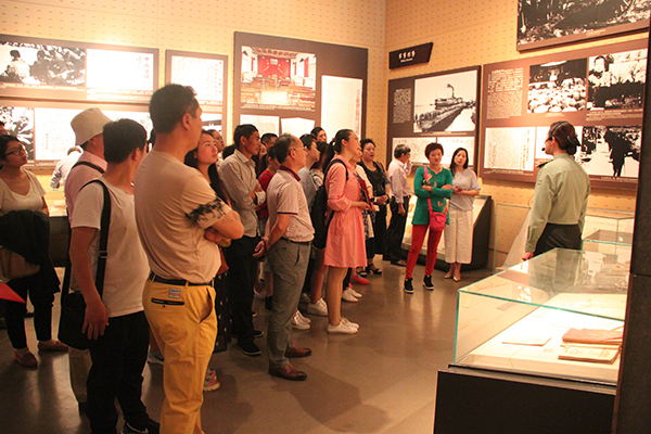 渡江战役纪念馆坐落在烟波浩渺的巢湖之滨🙃,造型犹如一艘乘风破浪的巨型战舰✳️,大有当年百万雄师万舰齐发横渡长江的磅礴气势🔕。纪念馆主体分为六个展厅🤧🪘,以实物、图片、文字和声💅🏿、光、电、水等现代科技手段👨🏼🎨,全景式展现渡江战役波澜壮阔的历史画卷。在讲解员的解说和带领下,大家依次参观了体验厅、水底厅👨🏽🍼、军功厅、胜利展厅🥍、英烈业绩厅以及人民支前展厅等🤳🏿,聆听了革命前辈们的英勇事迹,观看了气势恢宏的百万雄师过大江的石刻浮雕、珍贵的历史图片和文物👙,深刻感受到了渡江战役的艰苦过程和革命先烈们不怕牺牲的英雄主义精神。一幕幕场景🙋🏿♂️、一幅幅图片和一件件陈列品颂扬着中国人民解放战争的伟大胜利💨,也铭刻着人民群众不顾生命危险🍰,英勇支援前线,与人民军队一起浴血奋战的历史印迹,无不让大家心潮澎湃🤵🏻♀️,为革命前辈不畏艰险、勇往直前的渡江精神所感染、所鼓舞、所震撼。
