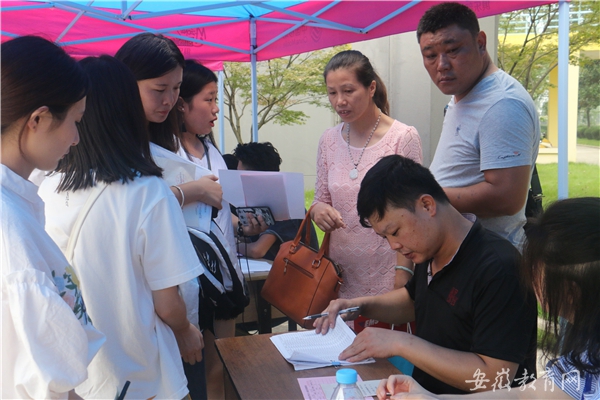 早上7点,迎新工作就进入了紧张而有序的状态,位于教学楼前广场的新生接待处🏡,不时迎来一批批洋溢着青春笑容的2017级新生。在新生接待处,工作人员有条不紊地接待着前来报到的新生和家长,他们会心的微笑和关切的问候🧏🏽♀️🤸🏻♀️,让新生和家长倍感温暖。