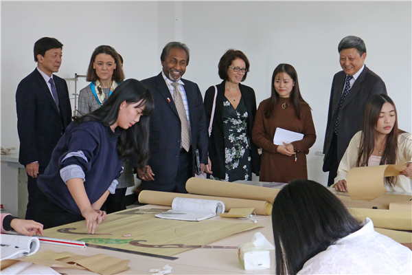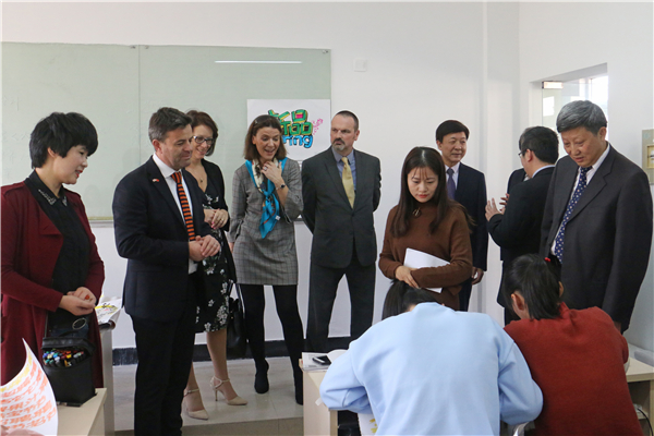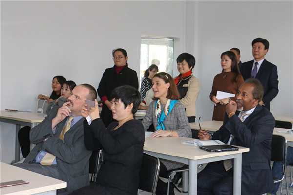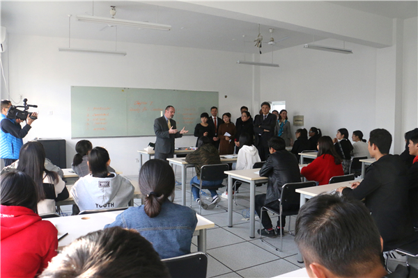 Judith Lamie副校长一行首先参观了我院中外合作办学项目,对我院服装与服饰设计🕦、旅游管理💇🏼♀️、视觉传播设计与制作专业进行了深入了解,在课堂上与我院师生进行了热烈的互动和友好交流,对我院学生的素养和设计作品表示赞赏🧍。为欢迎远道而来的客人🧛,同学们还即兴为代表团献上了英语小节目⛵️。