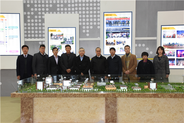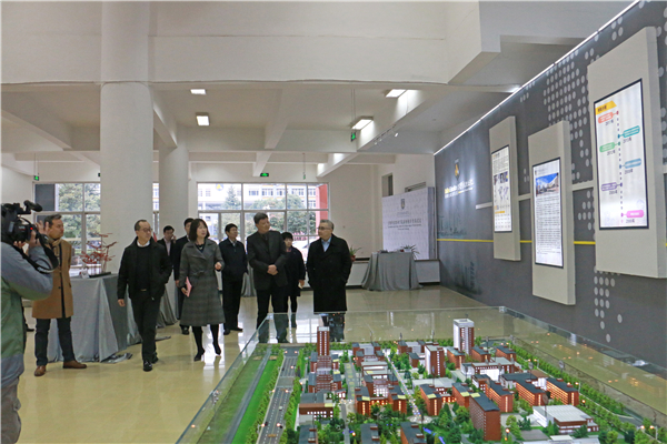 周华盛董事长一行首先参观了位于学院图书馆一楼的展厅,参观了学院的发展历史、学子风采、校园生活、学生作品等展板,重点了解了学院新桥校区的基本概况🏂🏻、发展目标、建设进度以及远景规划等情况。