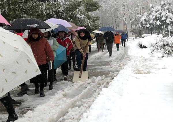 1月4日,突如其来的大雪覆盖了整个校园,银装素裹的校园分外美丽。为不影响全院师生的日常出行和正常的学习工作,为同学们创建一个方便⚗️、安全的校园环境,院团委积极组织学干参与清理校园积雪☝🏻👦🏿。