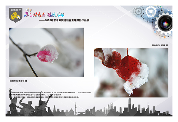 为迎接2018年新春的到来,见证和记录我院师生对艺术教育发展与实践应用的水平💼,同时也为了激励更多的学生通过此次主题摄影作品展能够真切体会到青春的印记,引导其关注🦚、摄取学习和生活中的美,1月12日—20日👩🏻🦯,艺术分院在学院图书馆一楼展厅举办了“影动青春 镜摄年华——2018年迎新春主题摄影作品展”。
