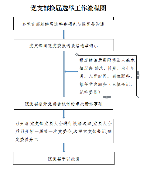 为进一步加强基层党组织建设,更好地发挥党支部的战斗堡垒作用,把新形势下从严治党的各项要求真正落到实处,根据《中国共产党章程》和《中国共产党基层组织选举工作暂行条例》规定,结合我院实际,对各党支部开展换届选举🙅🏽♀️。为保证换届工作的顺利进行,制定如下方案: