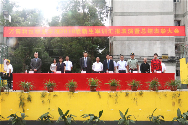 9月21日下午,全体新生精神焕发参加军训汇报表演暨总结表彰大会。学院领导王士明、王宜、刘文慧、马赞、耿瑜以及合肥蜀山区人武部军事科科长余军出席典礼🐪。学院相关部、室、分院负责人和全体教官以及新生参加。大会由学工部部长江仁昆主持👳🏻♀️。