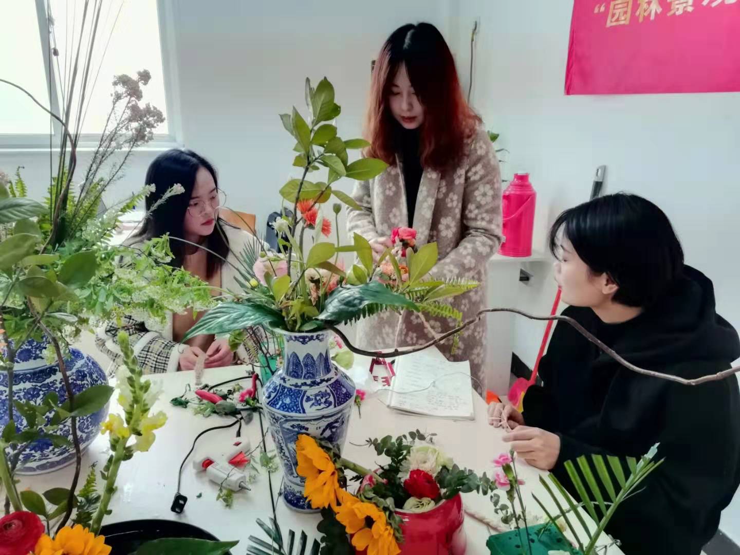 该项比赛分为现代花艺和中国传统花艺项目,选手需在10个小时现场制作完成桌花🐜、盒花🚴🏻♀️、人体花饰、捧花等造型👸🏽。比赛日益临近,两位指导老师和参赛选手丝毫不敢懈怠,从赛事规程深入解读、选购花材物料、方案来回磨合等细节都反复斟酌。