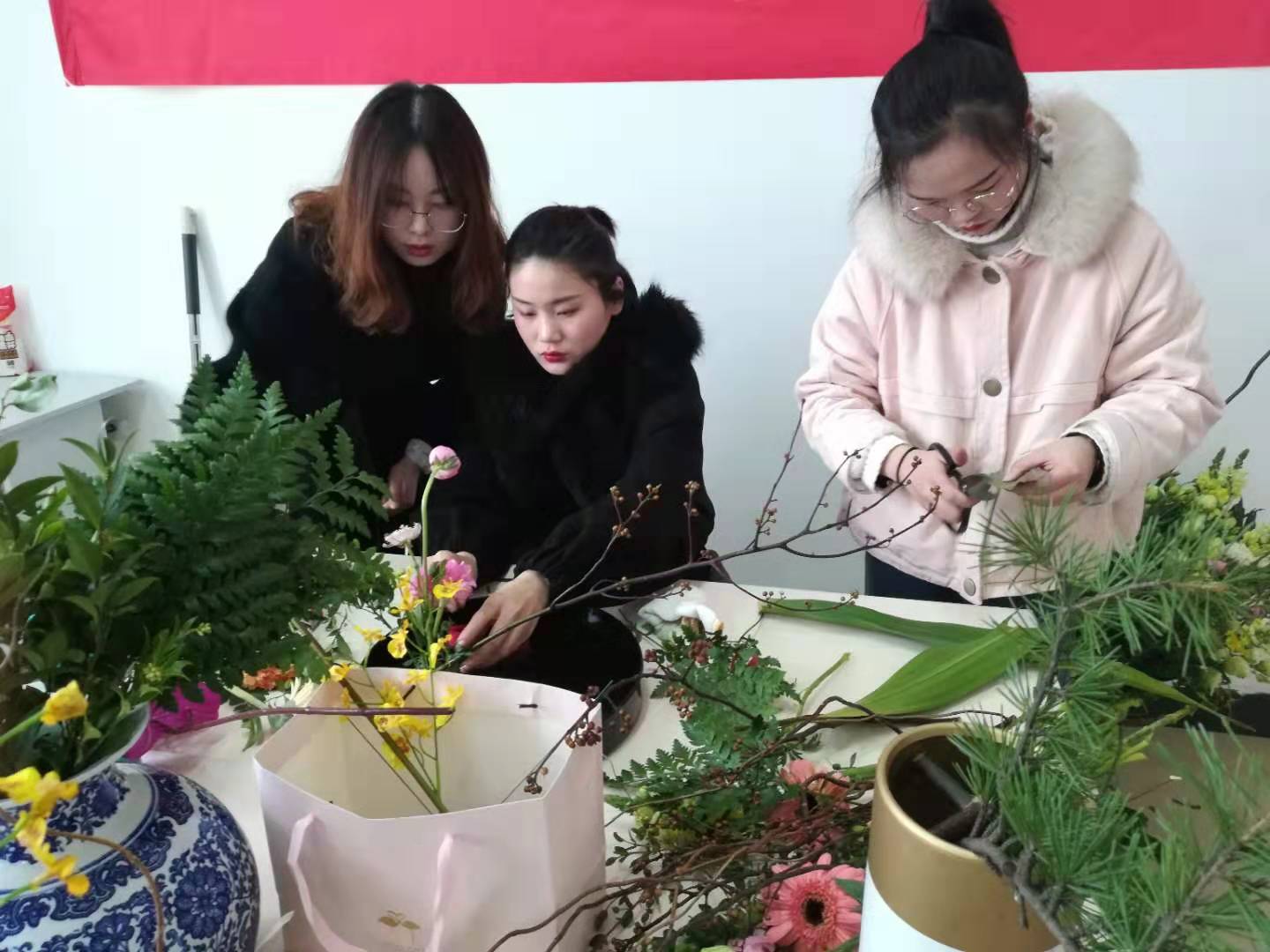 为迎接本次比赛👩🏽🦳,指导老师与参赛学生经过一个月的认真紧张筹备👩🔧、集训。花材琳琅满目👨🏻🦯➡️,龙柳、红端木🕢、绣线菊 💇🏼🥏、新菖蒲😻、鸟巢蕨🧑🏻⚖️、玉簪叶、芍药、针垫花、马蹄莲 、洋桔梗……花枝或纤细粗壮,花色或重彩清新,花型或饱满简约……参赛同学从起始的无从下手到现在的了如指掌。