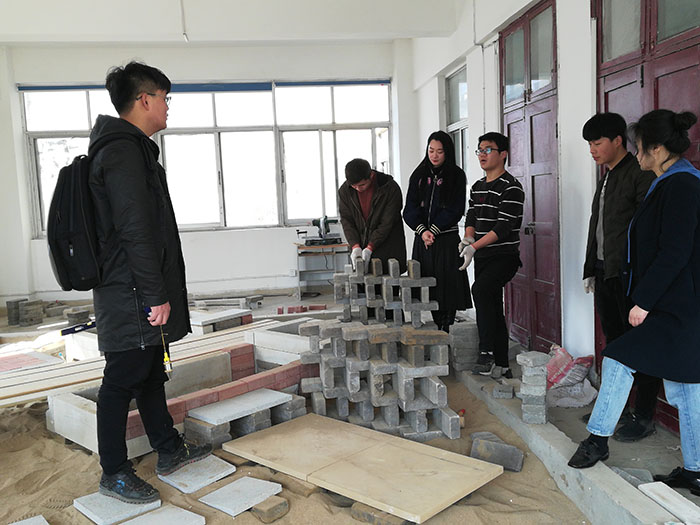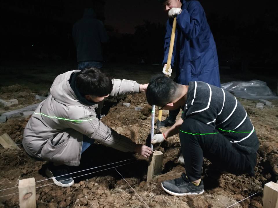 集训期间,参赛同学反复对接施工节点和施工难度及时调整方案⛴,几位指导老师主动放弃休息,悉心指导。连续参加过2017年、2018年该项赛事的代小龙同学无私奉献,在工作之余来校传经送宝,从放线定位、标高测量开始,一点一滴帮助他们积累参赛经验。