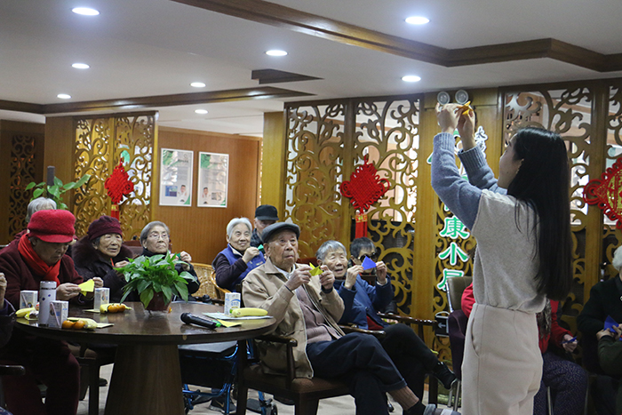志愿者们自发的准备了水果、牛奶和面包等慰问礼品,以及丰富多彩的娱乐节目和互动小游戏💁🏿,期间整个敬老院里充满欢声笑语🕺🏼。