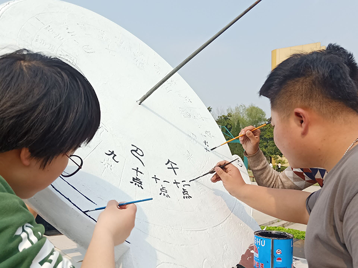 芳菲春日暖,为了用手中的画笔扮靓春日校园,4月3日下午🙆🏼,艺术分院院长副刘静,教研室主任关松涛,学工助理、学生社联美术协会指导老师水九清以及美术协会会长杨世豪等师生🤵🏻,在学院南门为学院标志性建筑物日晷重新换新装🧛🏼♂️🙇♀️。