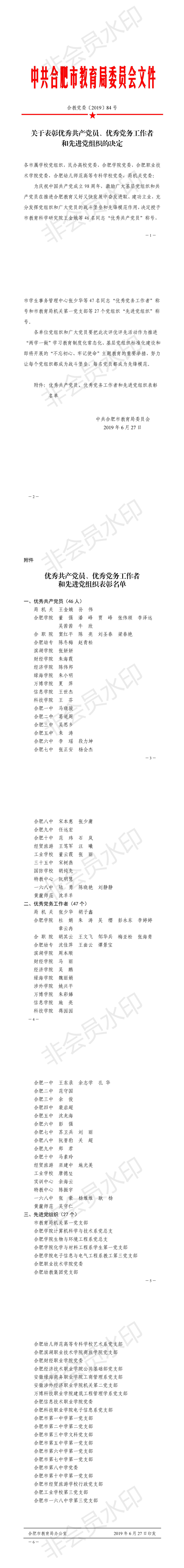 关于表彰优秀共产党员🕒、优秀党务工作者和先进党组织的决定