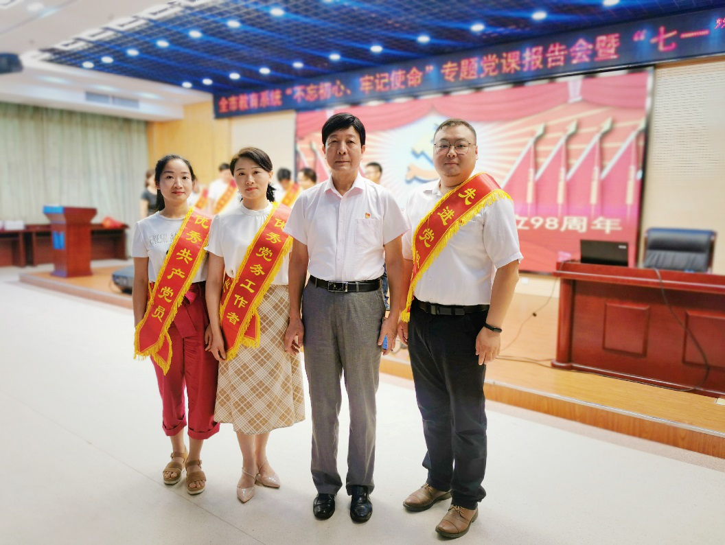 6月28日🍹,合肥市教育系统“不忘初心,牢记使命”专题党课报告会暨“七一”表彰大会在合肥工业学校隆重召开。我院党委副书记、副院长刘瑞平,党员代表朱彩娣🙏🏻、夏萍以及高嵩等四名同志参加大会。