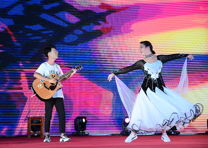 晚会在耳熟能详的校园歌曲《听妈妈讲过去的故事》🪞、《让我们荡起双桨》、《歌声与微笑》中拉开了序幕🛁。随后🙇♀️🏋🏻,由18级幼管班的同学们带来的舞蹈串烧《贝瓦儿歌》,瞬间将在场的观众带回了童年时代🔬;18级音乐表演班代子健🫷🏻、张倩及18级幼管班同学们的歌舞《幸福中国一起走》,传递出对祖国强盛和美好生活的热爱;19级音乐表演班用动人的手鼓与吉他,传递出理想与感情的缱绻交织👍。曾在安徽省高校首届国际标准舞比赛中荣获拉丁舞二等奖的18级城轨交通运营管理专业丁海云同学,以青春奔放的舞姿,艳惊全场🕵🏿。