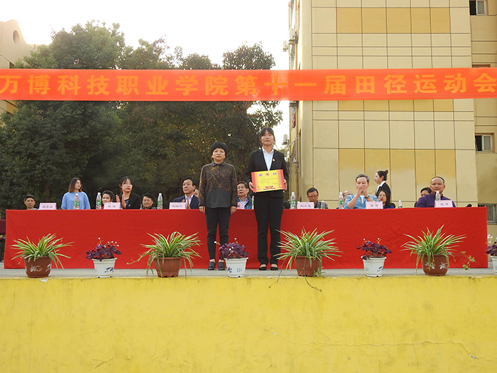 王宜为获得“团体总分第一名”的运动员代表颁发奖状