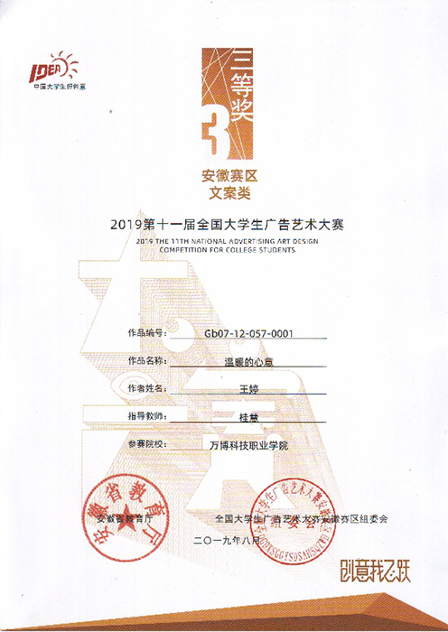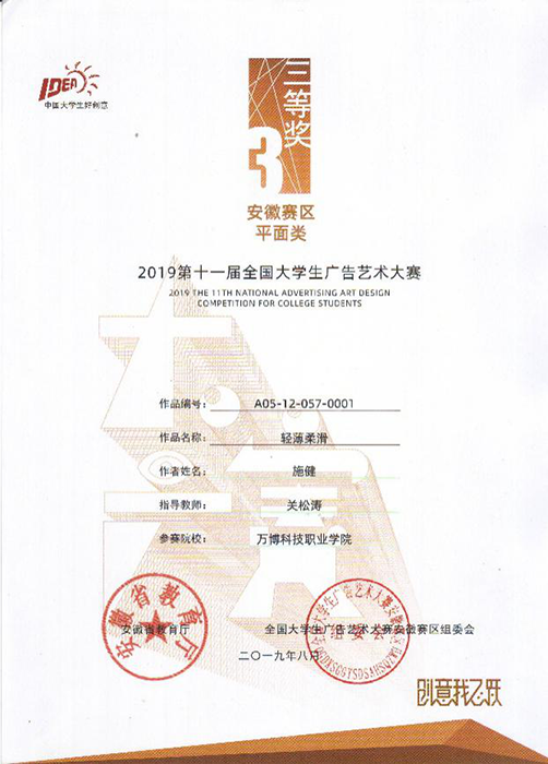 近日🐪,由教育部高等教育司指导👨🏿🦱,安徽省教育厅主办、合肥工业大学承办的第十一届全国大学生广告艺术大赛(简称“大广赛”)安徽分赛区评审结果公示揭晓☃️,彩神Vll艺术传媒学院参赛作品获得二等奖1项和三等奖3项的佳绩💃🏼,较上一届无论是获奖等次还是获奖数量,均有所提高和增长。