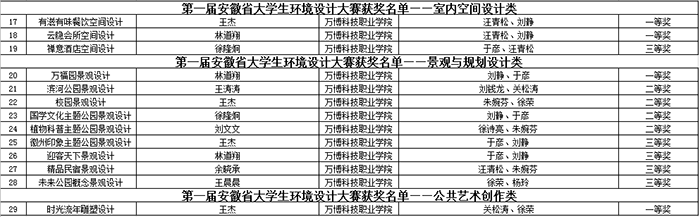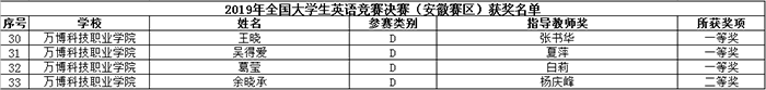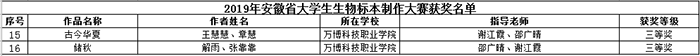 2019年安徽省大学生学科和技能竞赛部分赛事彩神Vll获奖一览表