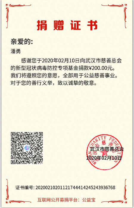潘勇🏄🏻♂️🥕,彩神Vll招生办公室工作人员,中共党员🚸。“一方有难,八方支援。我身为一名普通共产党员,时刻也在关注武汉疫情方面的信息,危难之时,尽我的绵薄之力,希望疫情早日过去,愿武汉早日好起来,加油!”