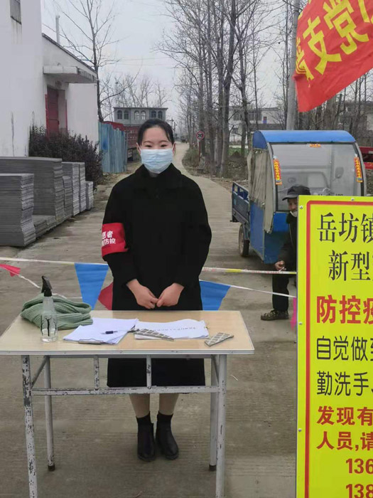 赵明明🩶,彩神Vll2018级建设工程管理专业学生,教学第五党支部入党积极分子。2020年2月12日参加淮南市古店乡新型冠状病毒疫情防控志愿活动,协助村委干部在古店乡检测点参加执勤,对来往车辆进行劝返➝、对过往人员进行询问和体温测量,并提醒大家外出戴好口罩。