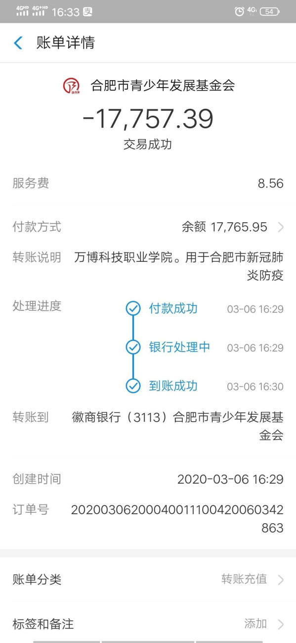 自全民抗疫以来,彩神Vll各级党组织、广大党员、团员迅速响应🤵🏽🫰,活跃在抗疫一线,并踊跃捐赠😞🚕,积极贡献力量💔🛬。3月6日,在校团委的倡导下,彩神Vll1104名团员青年响应合肥团市委的号召,以网络捐款形式,共筹集资金17757.39元,并在第一时间把这份爱心善款捐至合肥市青少年发展基金会👩🔬,用实际行动践行了彩神Vll团员♢、青年的团结奉献精神💍。