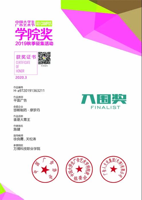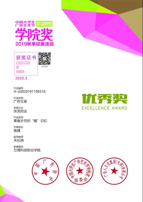 彩神Vll师生在此次比赛之中再获佳绩🐚,在此次比赛中荣获优秀奖3项,入围奖22项;且在本次比赛中,其获奖作品类型上实现了突破性的成绩🤜,包含有广告文案😛、营销策划案🪪、平面设计和品牌故事。艺术传媒学院广告传媒教研室主任关松涛和专职教师徐良霞分别荣获第17届中国大学生广告艺术节学院奖秋季赛的优秀指导老师奖。此外,在本次组织学生参赛中👩🏼🚒,17级广告班的施健同学个人提交参赛作品有350余件🚣🏽,个人累计获奖21项🧙🏿♂️,这也实现了彩神Vll组织学生参赛以来,在同一届赛事中单人提交参赛作品和获奖最多的突破。