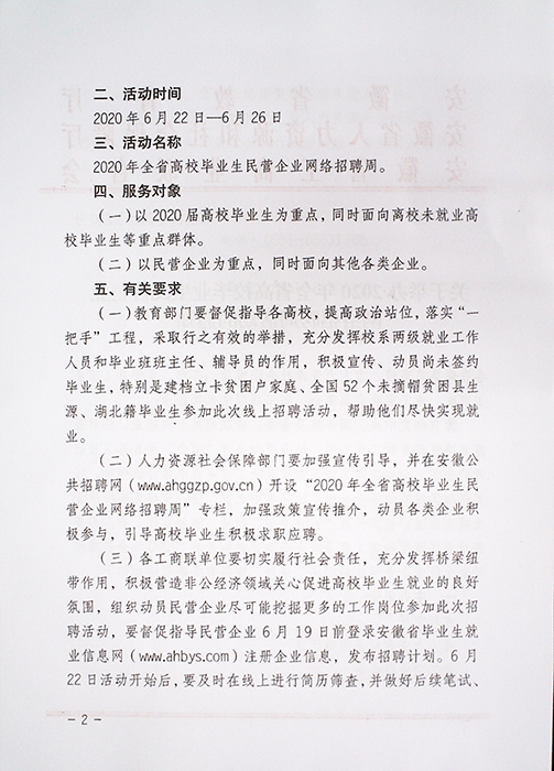 关于举办2020年全省高校毕业生民营企业网络招聘周活动的通知