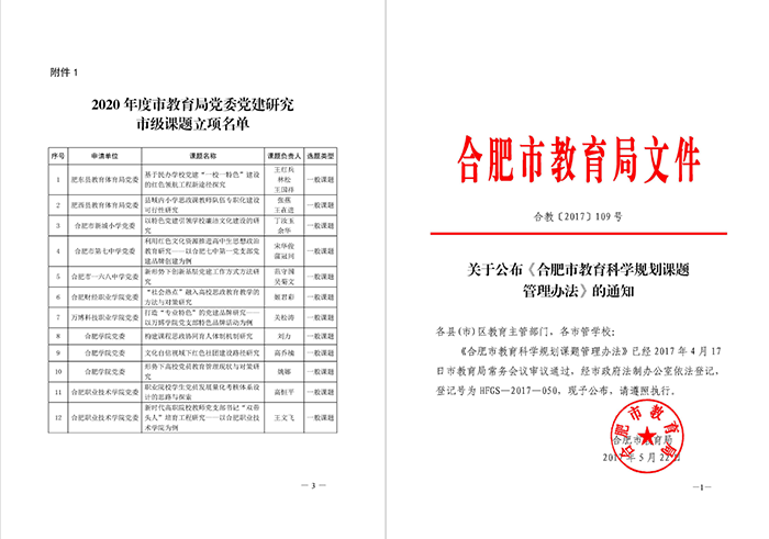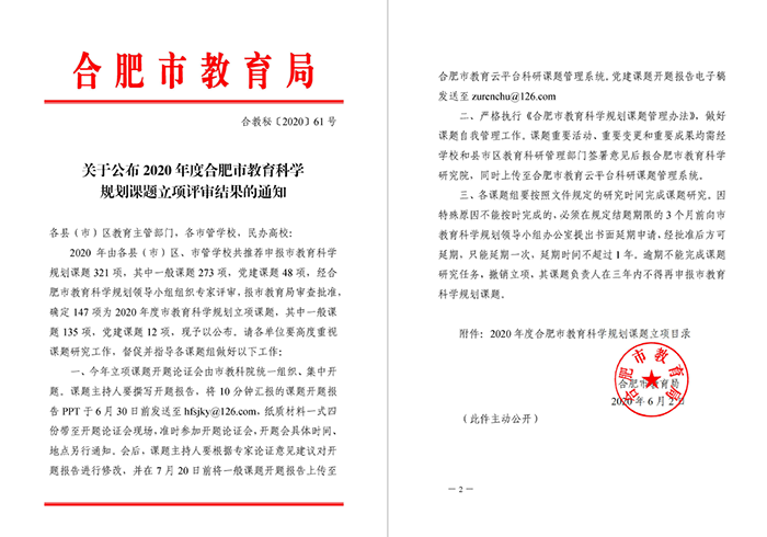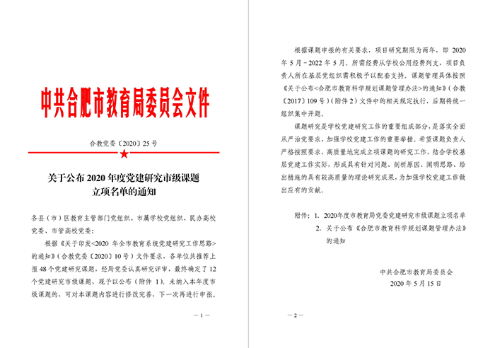 从2020年3月初🐼,彩神Vll党委工作部根据《关于印发<2020年全市教育系统党建研究工作思路>的通知》(合教党委〔2020〕10号)文件精神👨🏽🚒,积极动员学校8个党支部做好对党建研究课题的申报工作。课题研究是学校党建研究工作的重要组成部分,是落实全面从严治党要求,加强学校党建工作的重要举措。