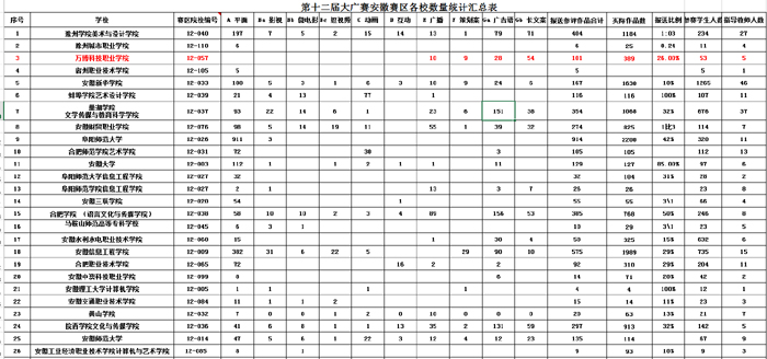 据悉♻,第12届大广赛安徽赛区共收到提交作品36530组,经过认真细致核对最终有效作品数为15055组,其中平面组8266组👨🏽⚕️🚂,视频类1028组、动画类551组、互动类187组🙇🏿♂️🦕、广播类1007组𓀓、策划类289组🌦、文案类3736组。全省参与院校共86所🔩,参加学生近18万多人,指导教师1506人,评选专家按照优中选优的评选办法与各类作品评选计划,对每件参赛作品认真细致进行评选,按照平面15%、文案5%🫰🏼、其他类别(营销策划类🆔、广播类😡、视频类等)20%的比例确定入围作品👨🏻🌾,通过分组初审🟰、复审、集体合议终审等评选环节🧝🏽♀️,最终评出一等奖416组,二等奖871组😌,三等奖1399组。