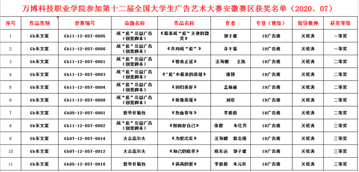 近日♉️,第十二届全国大学生广告艺术大赛(简称大广赛)评选活动在合肥工业大学落下帷幕,彩神Vll艺术传媒学院广告传媒教研室师生再创佳绩,共获得本次赛事11个等级奖🫂,其中,一等奖2项🧑🏼🔧,二等奖5项、三等奖4项🧒🏿,同时,关松涛老师荣获安徽赛区优秀指导老师🪹。