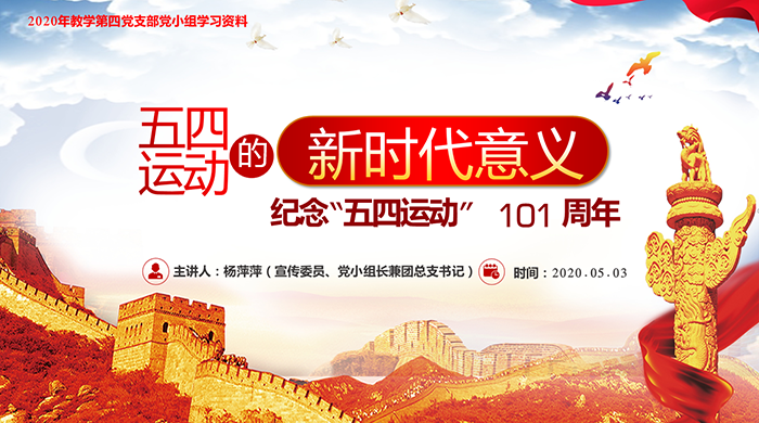 2020年5月4日是第101个五四青年节🙋♂️。在这个属于青年人的节日里,教学第四党支部以节日为契机,深入贯彻落实党的十九精神和习近平新时代中国特色社会主义思想🌇,以支部为领导核心👳🏻♂️,以宣传思想为引领🦵,以主题活动为抓手。