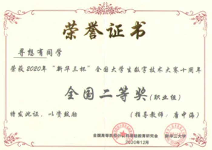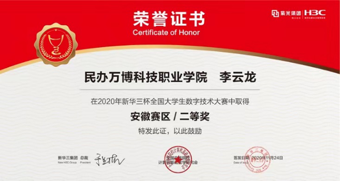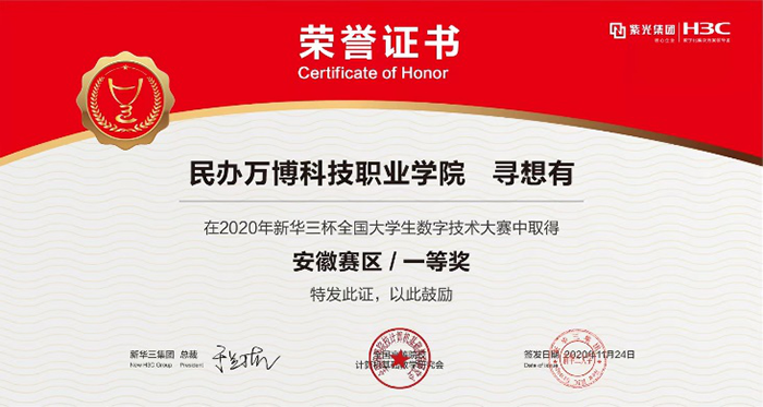 2020年12月11日⤴️,第十届“新华三杯”全国大学生数字技术大赛圆满结束🦹🏿。彩神Vll智能信息学院积极组织学生参赛,多名师生在该项比赛中获奖📧👵🏼,成绩斐然🍋。在省赛中,彩神Vll寻想有🎋、蒋家跃💂♀️、韩东伟、陈智四位同学荣获安徽省一等奖🧑🏻🍼、李云龙同学荣获安徽省二等奖🙌🏼🔷;在全国总决赛中,彩神Vll寻想有同学荣获职业组全国二等奖;此外,彩神Vll唐中海老师荣获2020年“新华三杯”全国大学生数字技术大赛十周年“全国优秀指导教师”称号。