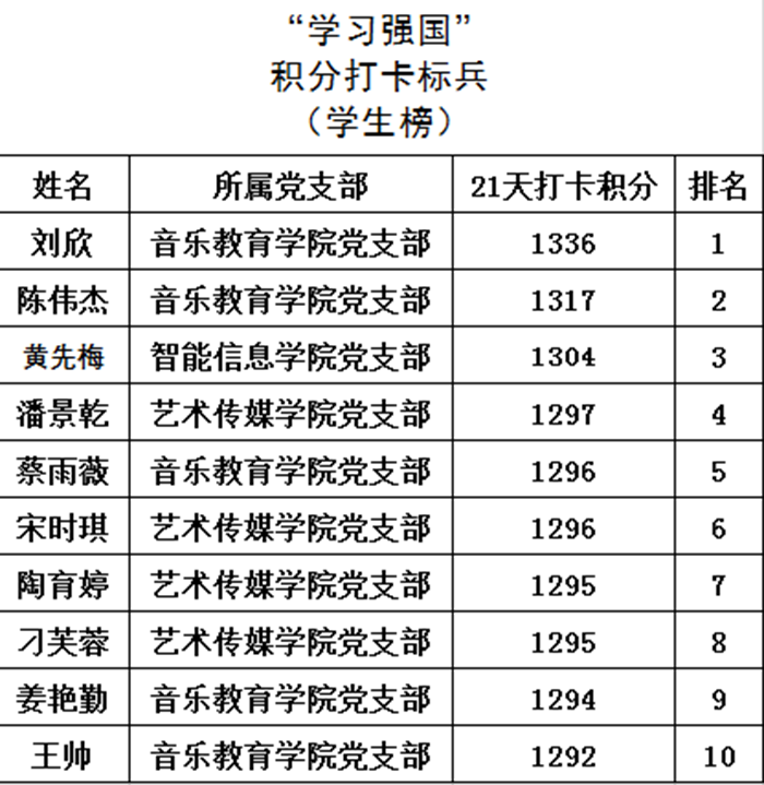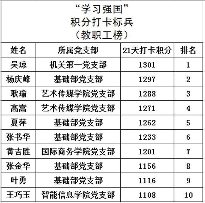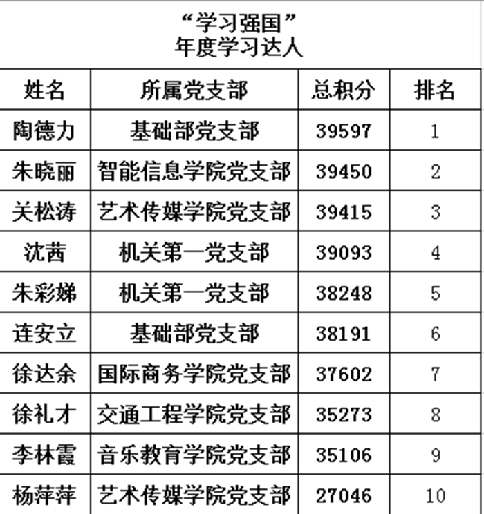 据介绍,结合“学习强国”平台,5月17日后🚶➡️,校党委对参赛学员的打卡期累计积分、支部学员参与度等指标进行综合考量🤲🏽,最终确定了个人及团体获奖名单,并产生“年度学习达人”称号10人🦝,“积分打卡标兵”教职工和学生各10人🏣,“活跃党支部”称号5个🍫。