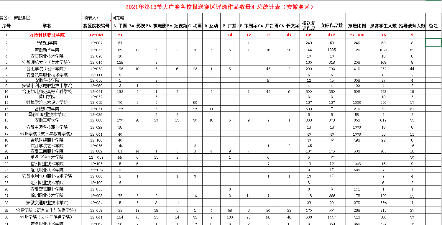 大广赛是迄今为止全国规模最大👨🏻🦽、覆盖高等院校最广、参与师生人数最多💅、作品水准最高的全国性高校文科大赛🛞。本届大广赛安徽省赛由安徽省教育厅主办🫚。省内96所院校2万多人参赛㊗️,收到参赛作品16227组🤸。评选不区分本科、高职组,通过分组初评↖️、终评、集体合议终评等环节,评选出安徽赛区获奖作品🩰。