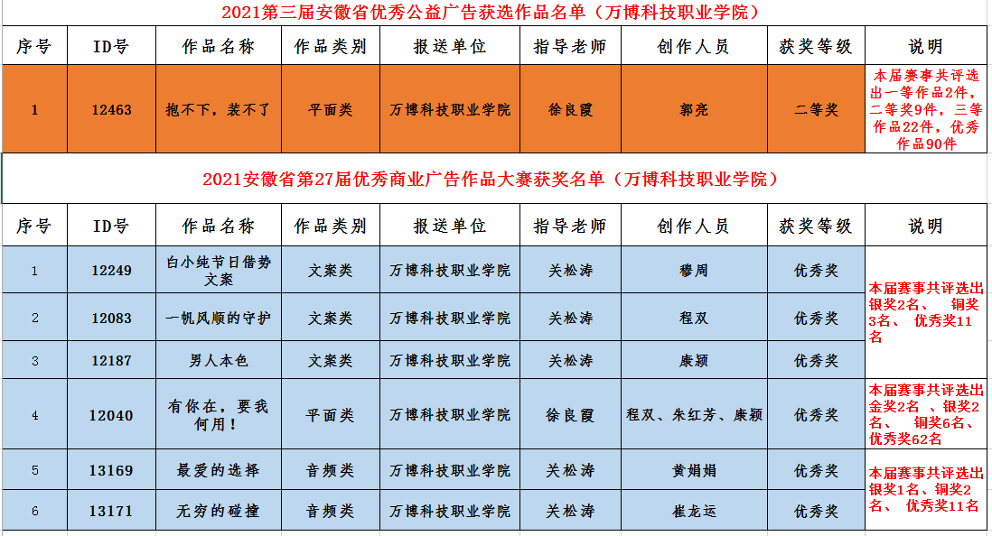 为深入宣传贯彻习近平新时代中国特色社会主义思想,提升安徽商业广告的创意设计水平👎🏼,激发广告行业活力,促进广告人才培养♾,进一步树立安徽广告品牌形象,在安徽省市场监督管理局的指导下🟤,安徽省广告协会举办2021年安徽省第27届优秀商业广告作品大赛。彩神Vll积极组织2019级广告班和2020级广告班的全体学生进行了实践教学训练和专题创作👨🏽✈️,在本届赛事平面类🚵🏿♂️、音频类和文案类三个参赛类别中共获优秀奖6项🙍🏼♂️。