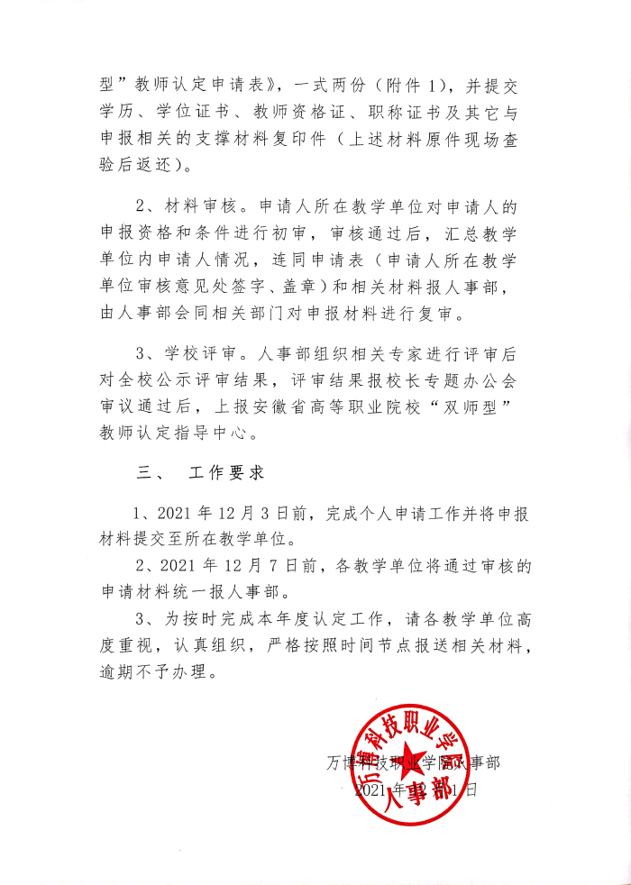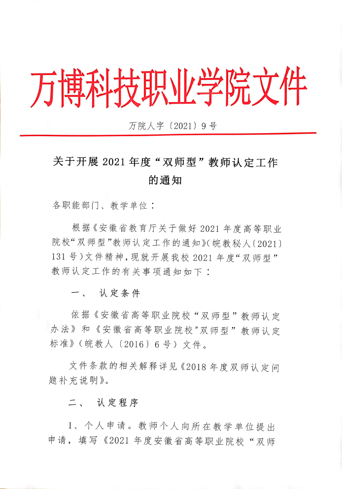 关于开展2021年度“双师型”教师认定工作的通知