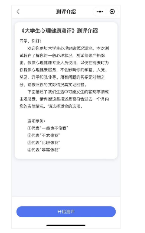 第六步:阅读完毕后点击“开始测评”进入答题页面。