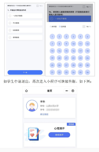 如测评者中途退出,再次进入小程序可继续答题,如下图👩🏽🔧: