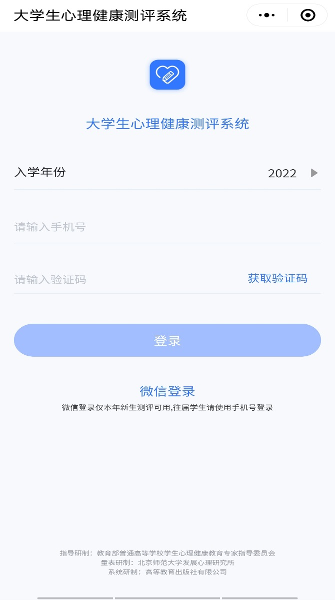 平台提供两种登录方式,一种是点击“微信登录”𓀘,授权微信登录平台(仅限2022级所有在籍学生测试使用)。另一种是输入手机号🎺,选择“入学年份”🛠,点击“获取验证码”进行登录。两种方式均要求手机号和老师导入的手机号一致🚵🏼♂️👳🏿♀️。