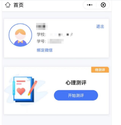 第四步:登录后可看到个人信息和心理测评两个模块🤩。点击“绑定微信”,下次即可一键登录🙎🏿,无需再进行手机号验证码操作。